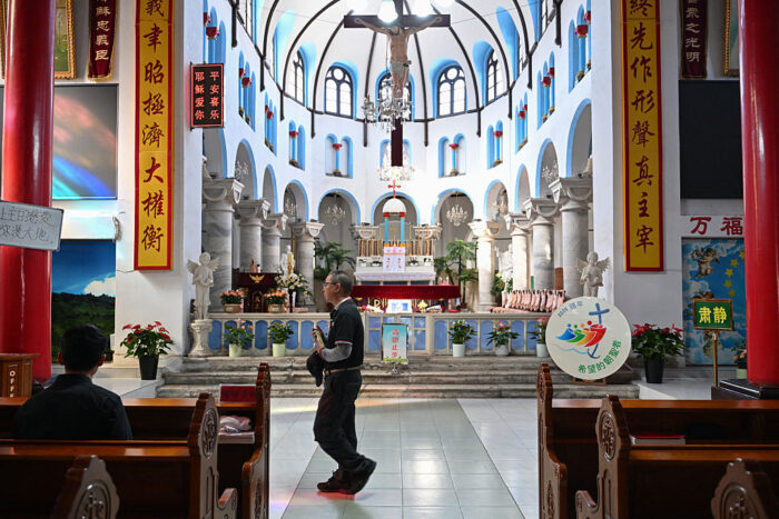 Am 22. April 2025 in der katholischen Kirche in Baoding in der nordchinesischen Provinz Hebei. China und der Vatikan unterzeichneten 2018 ein Abkommen, das sowohl Peking als auch dem Heiligen Stuhl ein Mitspracherecht bei der Ernennung von Bischöfen einräumt. Foto: Adek Berry/AFP via Getty Images