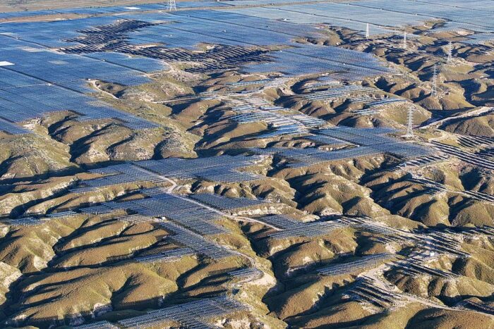 24. September 2025: Solarmodule auf den Hügeln der vierten Photovoltaik-Anlage in Yinchuan in der nordchinesischen Region Ningxia. Foto: -/AFP via Getty Images