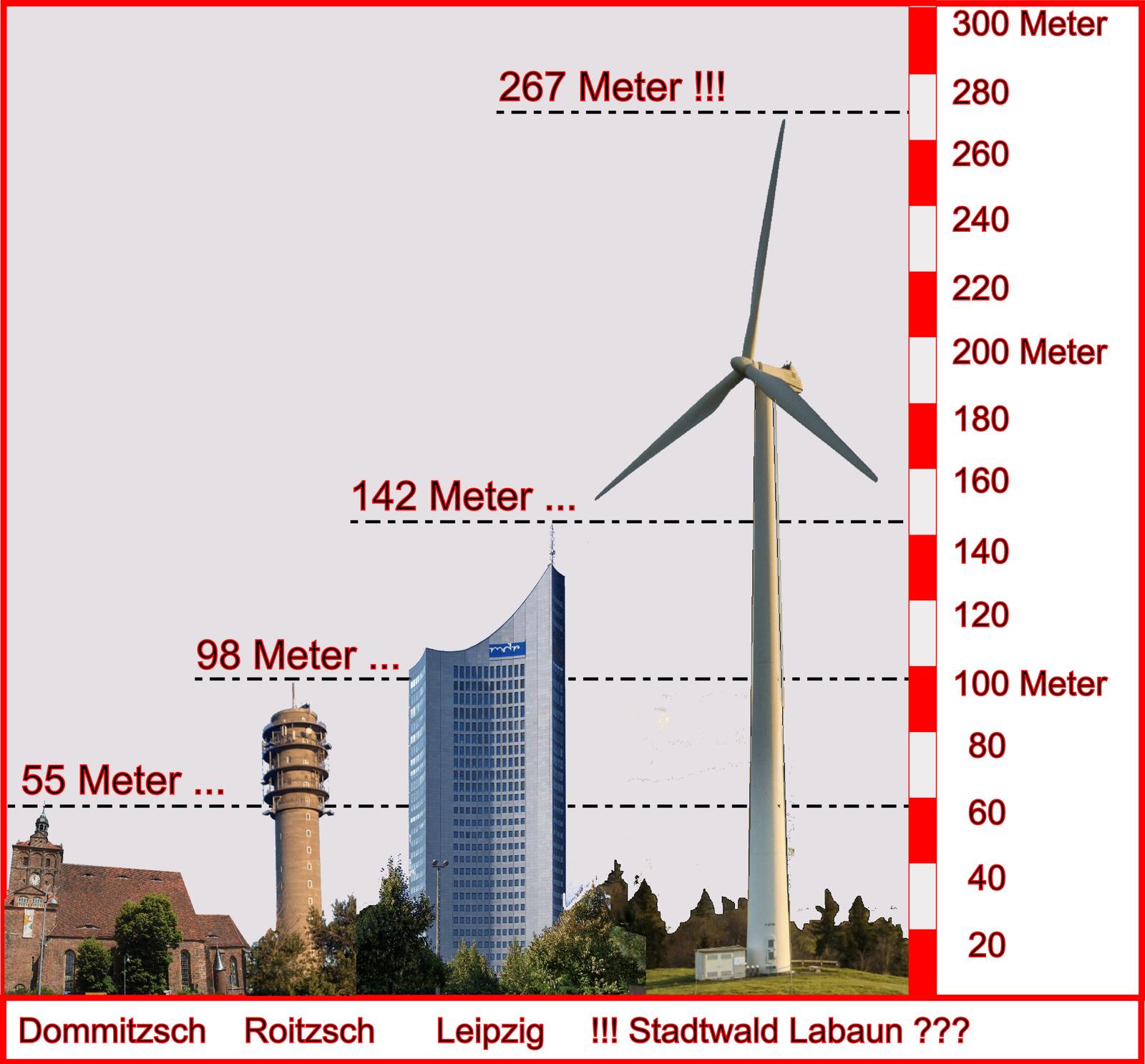 Die im Jahr 2024 für den Stadtwald Labaun geplanten Windkraftanlagen sollten jeweils 267 Meter hoch sein. Foto Hartmut Bergk