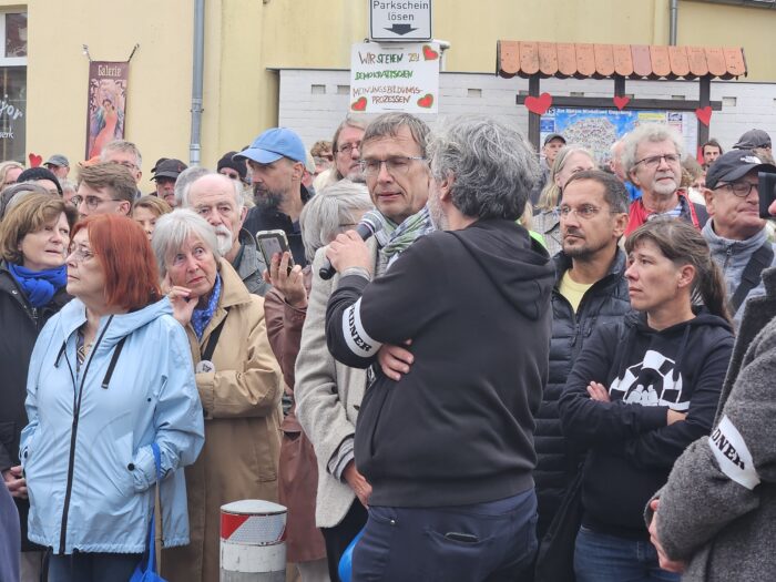 Selbstverständlich habe man die Stadtvertretung eingeladen. Die Kundgebung sei ein „Angebot, aus dieser Situation herauszufinden“. Nicht mit einem „Schwamm drüber“, aber durch den Dialog, auch im Streit.