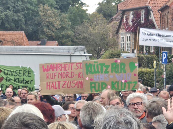 Es ist ein sonniger Herbsttag in Klütz. Auf dem Marktplatz drängen sich rund 500 Menschen. Manche halten Schilder in die Höhe. Auf einem steht in großen Buchstaben: „Bloß nicht kuschen!“ Auf einem anderen kann man lesen: „Wahrheit statt Rufmord – Klütz hält zusammen.“ Man spürt an dem frühen Abend in der kleinen mecklenburgischen Stadt: Die letzten Tage haben das Leben der etwas über 3.000 Einwohner in Klütz gehörig durcheinandergewirbelt. Über zwei Stunden wird über einen Vorfall diskutiert, der in den vergangenen Tagen bundesweit Schlagzeilen machte: die Ein- und dann wieder Ausladung des jüdischen Publizisten Michel Friedman.