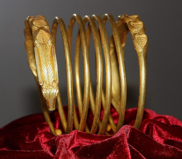Dakisches Goldarmband, 2. Jahrhundert v. Chr. bis 1. Jahrhundert n. Chr., ausgestellt im Nationalmuseum für rumänische Geschichte, 2011. Foto: Gemeinfrei