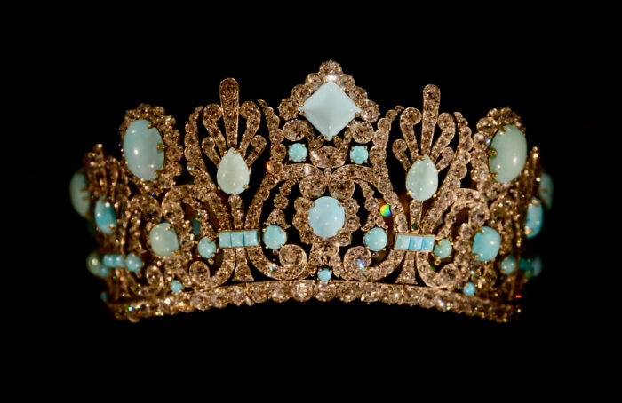 Marie Louises Diadem mit eingefassten Türkisen, ausgestellt im Naturkundemuseum in Washington. Foto: Alvesgaspar – Eigenes Werk, CC BY-SA 4.0