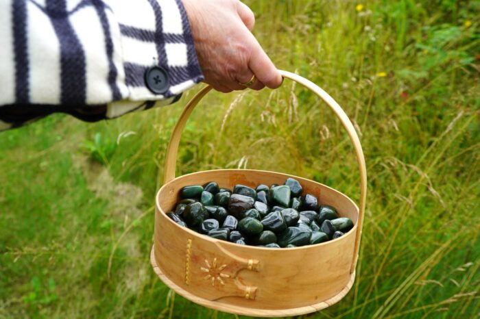 Jan Sjöström hat Jadesteine durch Trommeln bearbeitet. „Das ist eine Kunst für sich“, erklärt der Silberschmied. Foto: Eva Sagerfors