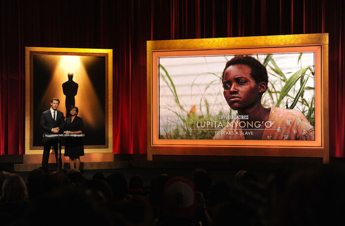 16. Januar 2014, AMPAS Samuel Goldwyn Theater, Beverly Hills, Kalifornien – Szene bei der Bekanntgabe der Nominierungen für die 86. Oscar-Verleihung durch Schauspieler Chris Hemsworth und Cheryl Boone Isaacs, Präsidentin der Academy of Motion Picture Arts and Sciences (AMPAS), der Organisation, die die Oscars (Academy-Awards) vergibt. Foto: Kevin Winter/Getty Images