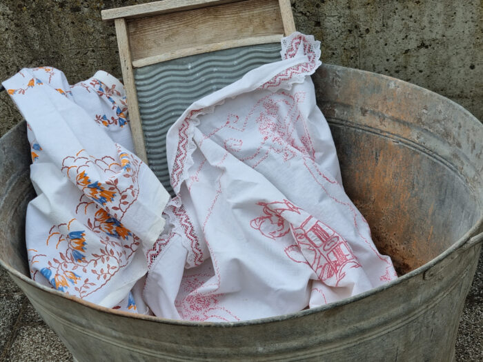 Selbst heute noch bin ich fasziniert davon, wie gut Waschbretter funktionieren. Ich hätte das nicht für möglich gehalten. Es muss einiges an Erfahrung und Vorstellungskraft erfordert haben, um auf diese Idee zu kommen. Es war mit Sicherheit eine Errungenschaft gegenüber einem Stein, der die Kleidung beschädigte, oder einem einfachen Stock, der beim Waschen eingesetzt wurde. Das Waschbrett schont empfindliche Stoffe und reinigt selbst Jeans wirklich gut.