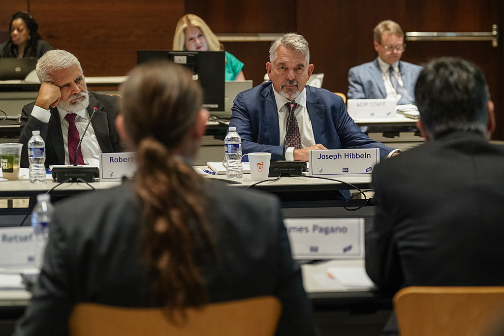 Robert Malone (l.) und Joseph Hibbeln nehmen am 25. Juni 2025 an der ersten Sitzung des Impfberatungsausschusses im globalen Hauptsitz der Gesundheitsbehörde CDC in Atlanta teil. Gesundheitsminister Robert F. Kennedy Jr. entließ am 9. Juni alle Mitglieder des Ausschusses und wählte neue Mitglieder aus. Foto: Elijah Nouvelage/Getty Images