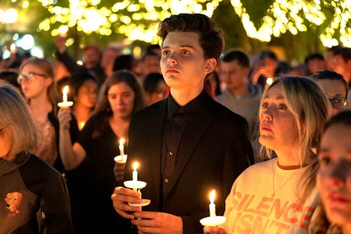 Menschen trauern um Charlie Kirk, den Gründer von Turning Point USA, während einer Gebetswache am 10. September 2025 in Scottsdale, Arizona. Foto: Rebecca Noble/Getty Images