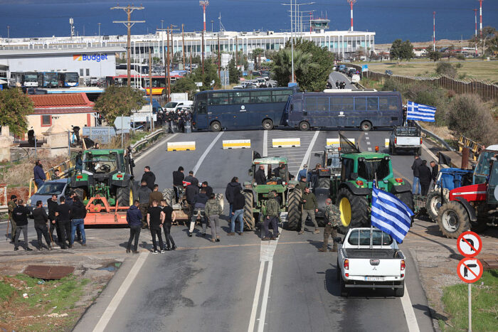 Aufnahmen des staatlichen Fernsehsenders ERT zeigten, wie Dutzende Landwirte mit Steinen und Stöcken auf Polizeifahrzeuge eindroschen, die den Protestierenden den Weg zum Flughafen Chania blockierten. Die Proteste stehen im Zusammenhang mit Ermittlungen zu massivem Betrug mit EU-Agrarsubventionen.