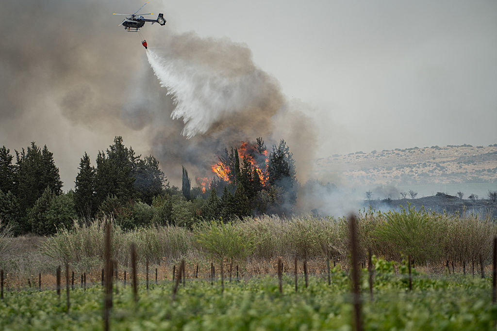 Ein israelischer Löschhubschrauber an einem der Brandherde, die am 30. April 2025 rund um Jerusalem, Israel, lodern. Foto: Ori Aviram/Middle East Images/AFP via Getty Images