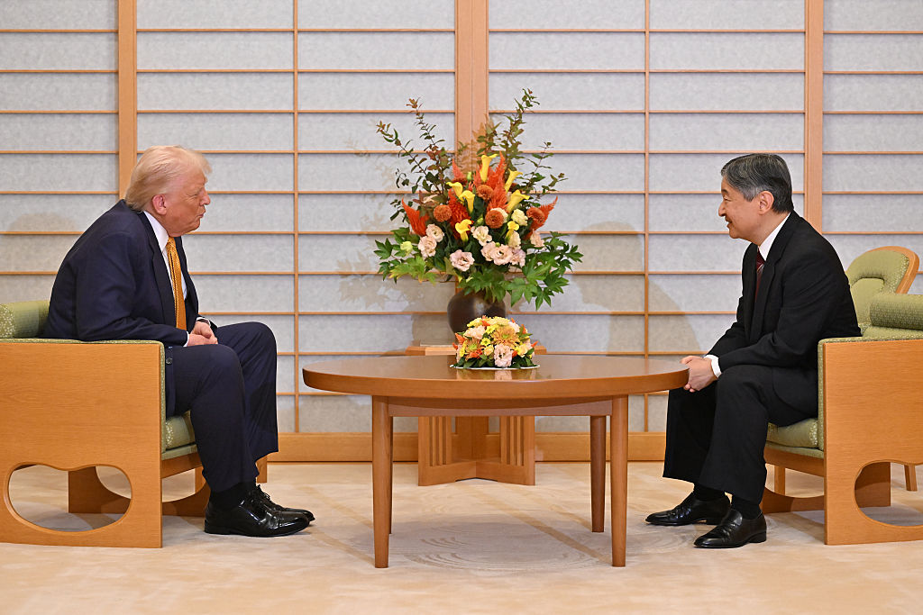 US-Präsident Donald Trump spricht mit dem japanischen Kaiser Naruhito während ihres Treffens im Kaiserpalast am 27. Oktober 2025 in Tokio, Japan. Foto: Kazuhiro Nogi – Pool/Getty Images