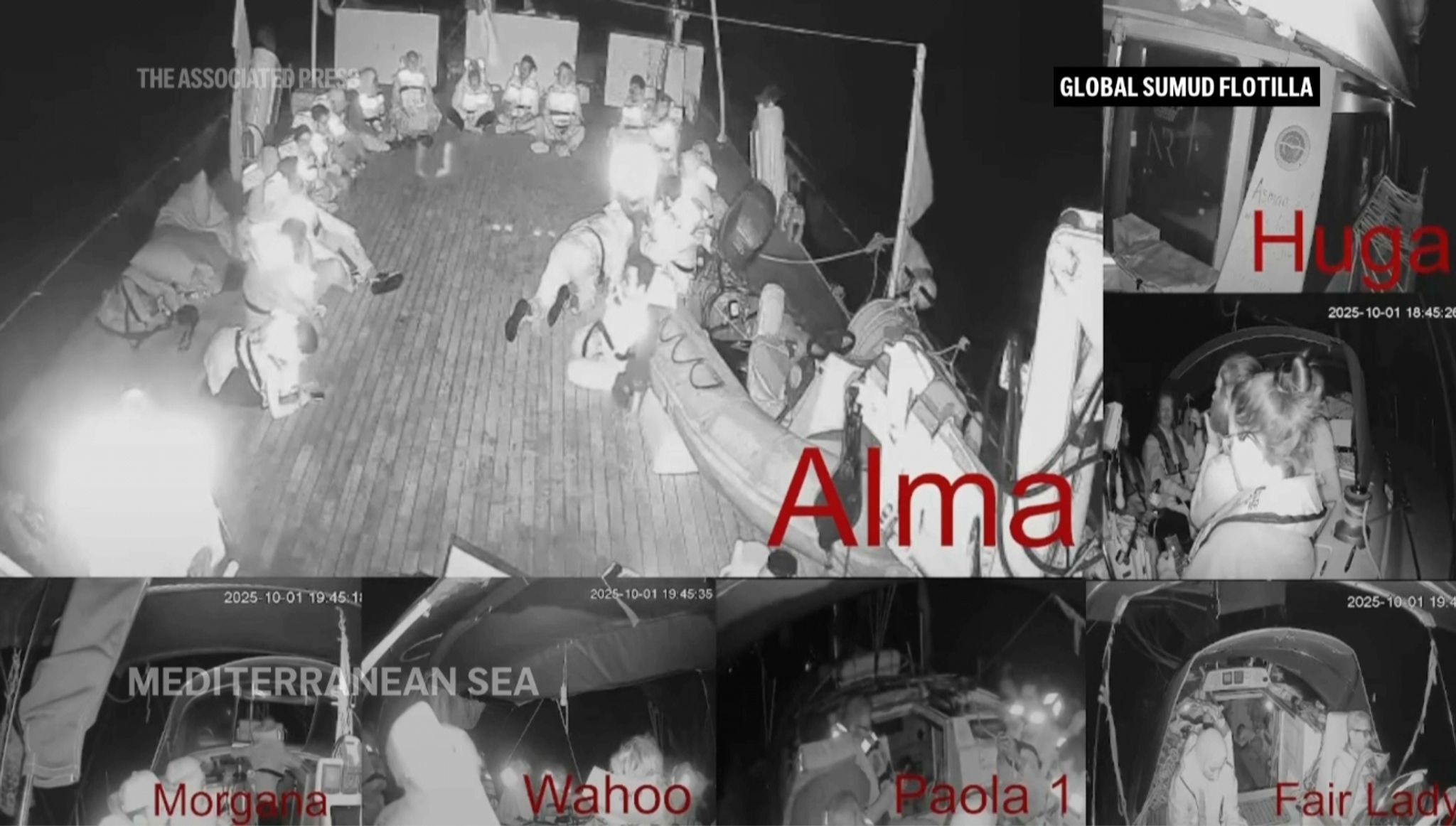Live übertragene Bilder von Kameras an Bord einiger Boote zeigten Aktivisten in Schwimmwesten, die offenbar auf ein Entern ihrer Boote durch israelische Marinesoldaten warteten.