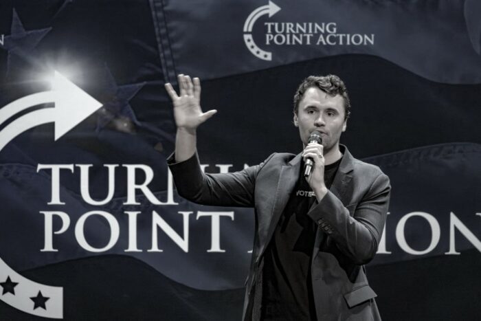 Der US-Podcaster, Charlie Kirk, ist erschossen worden. Foto: Olivier Touron/AFP via Getty Images