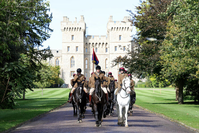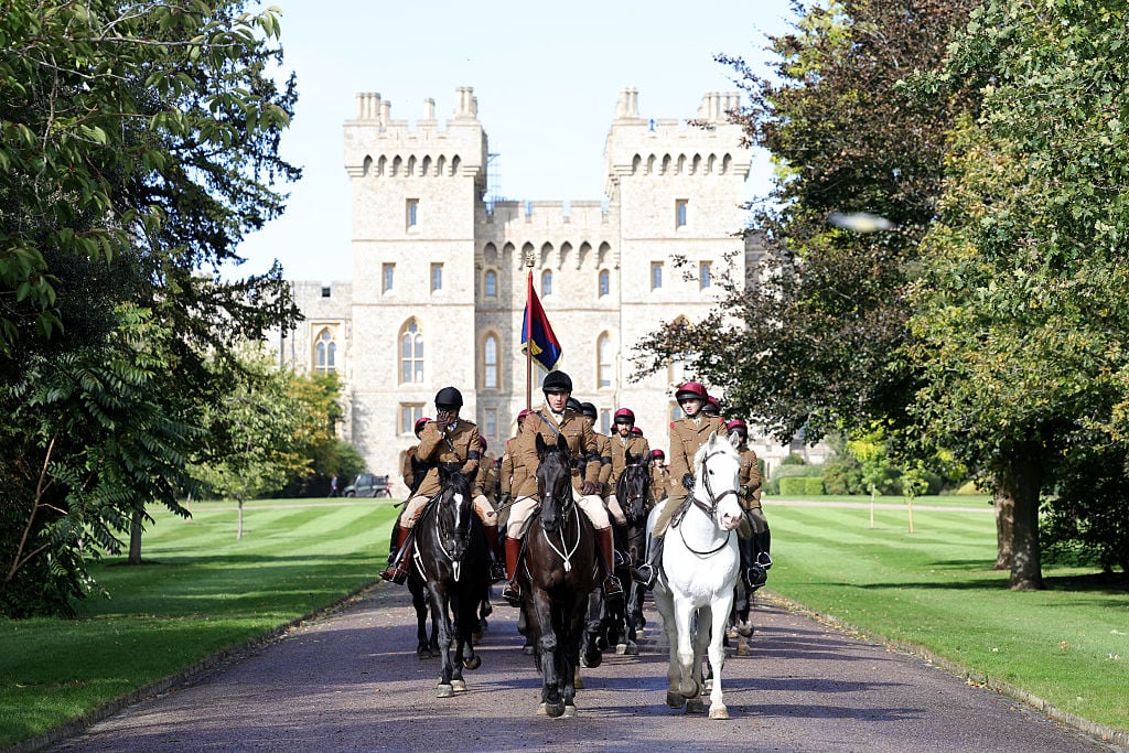 Am 15. September 2025 wird in Windsor Castle westlich von London für den Staatsbesuch des US-Präsidenten und seiner Frau geprobt. Donald Trump ist der erste Präsident, der zu einem zweiten Staatsbesuch eingeladen wurde, nachdem er 2019 während seiner ersten Amtszeit im Weißen Haus von Königin Elizabeth II. empfangen worden war. Foto: Toby Shepheard/AFP via Getty Images