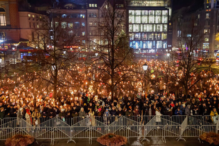 Menschen warten auf Maria Corina Machado. Die Kundgebung wurde von der Norwegian Venezuelan Justice Alliance zu Ehren der Friedensnobelpreisträgerin (nicht im Bild) am 10. Dezember 2025 in Oslo organisiert. Foto: Jonas Been Henriksen/NTB/AFP via Getty Images