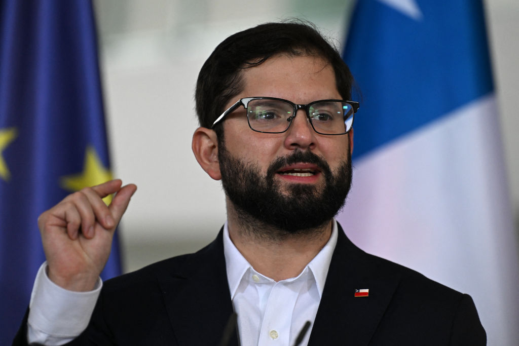 Der chilenische Präsident Gabriel Boric traf sich am 10. Juni 2024 zu Gesprächen im Kanzleramt in Berlin mit dem deutschen Bundeskanzler. Foto: RALF HIRSCHBERGER/AFP via Getty Images