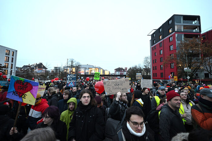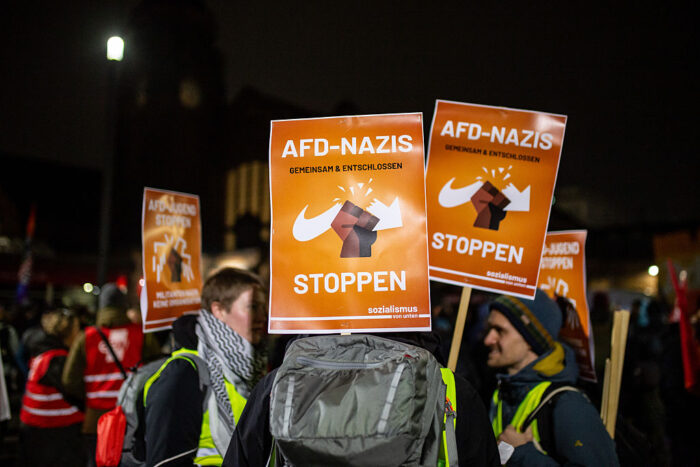 „16 Blockaden schneiden der AfD auf dem Weg zur Neugründung ihrer Jugendorganisation den Weg ab“, hieß es. Das Protestbündnis sprach von mehr als 15.000 Aktivisten auf der Straße und weiteren zehntausend, die sich auf dem Weg befinden.