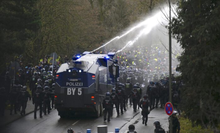 Die Polizei räumte unter anderem eine Blockade von 2.000 Personen auf der Bundesstraße 49 und setzte nach eigener Aussage auch Wasserwerfer ein, „nachdem die Gruppe auf die mündliche Aufforderung, die Straße freizumachen, nicht reagiert hat“.