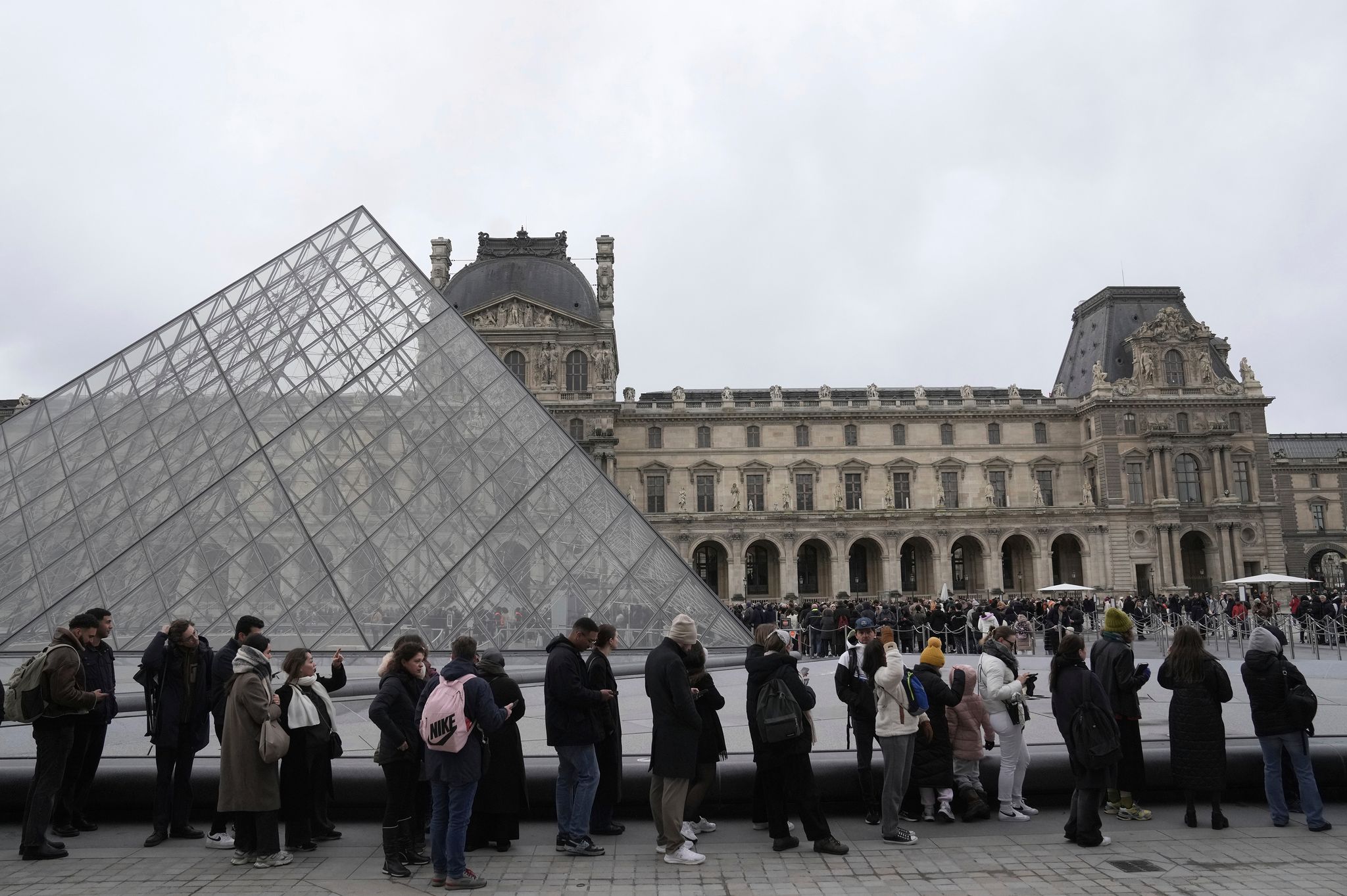 Menschen stehen vor den Louvre Schlange. Foto: Thibault Camus/AP/dpa
