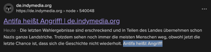 Auf der Website indymedia.org wurde am frühen Morgen ein Text mit dem Titel „Antifa heißt Angriff“ veröffentlicht: