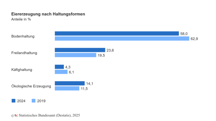 Eiererzeugung nach Haltungsformen, 2025. Foto: Statistisches Bundesamt