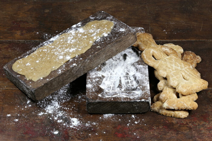 - Die traditionellen Figuren des Spekulatius werden mit geschnitzten Holzformen gemacht.