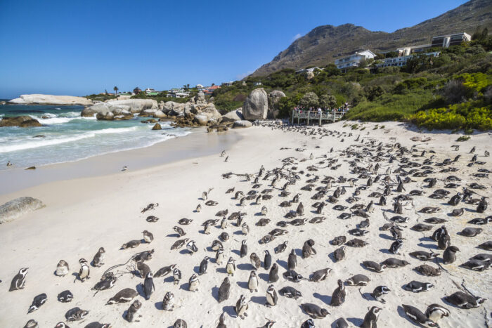 Die Pinguine an einem sonnigen Tag am Boulder Beach in Kapstadt. Foto: picturist/iStock