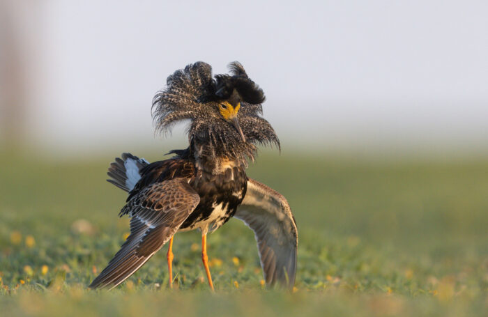 Ein Kampfläufer (Calidris pugnax) im Prachtkleid während der Balz. Foto: Wirestock/iStock